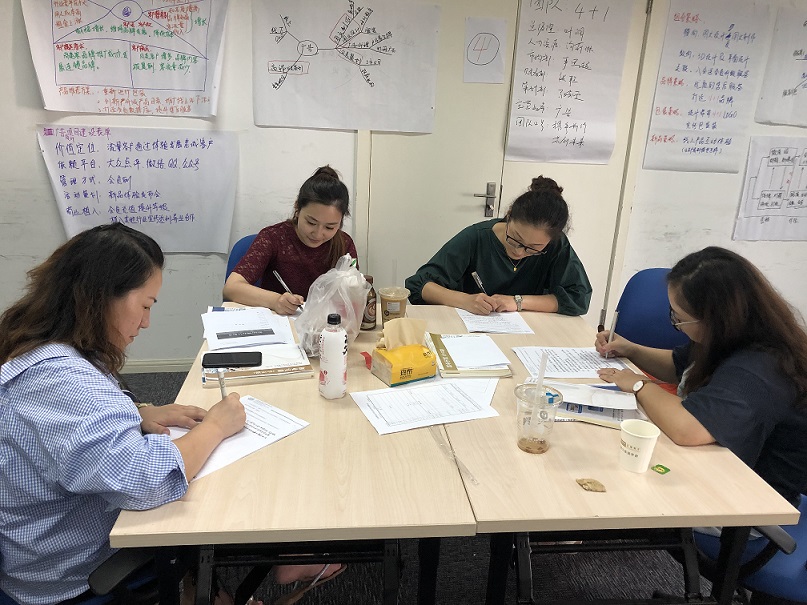 培訓(xùn)過程中采取小組教學(xué)的方式,每個(gè)小組即為一個(gè)模擬公司,大家通過推舉選舉出總經(jīng)理,再根據(jù)各自擅長(zhǎng)的領(lǐng)域確定人事部、銷售部、采購(gòu)部、財(cái)務(wù)部等部門的負(fù)責(zé)人。整個(gè)培訓(xùn)過程中,在顏老師的指導(dǎo)和引領(lǐng)下圍繞確定的項(xiàng)目進(jìn)行討論、分析、核算、確認(rèn),最終完成各個(gè)小組的創(chuàng)業(yè)計(jì)劃書,在模擬公司的運(yùn)營(yíng)中學(xué)習(xí)、思考、總結(jié),不斷完善自己的項(xiàng)目。