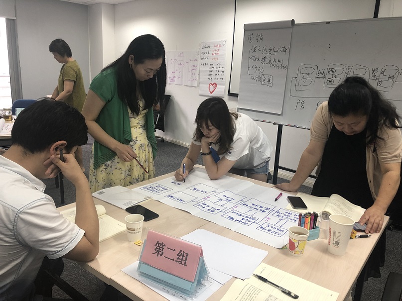 20名學(xué)員通過學(xué)習(xí)項(xiàng)目確定圖、產(chǎn)品策略圖、盈利模式圖、O2O流程圖、客戶分析圖等各類圖表,系統(tǒng)了解如何對(duì)創(chuàng)業(yè)項(xiàng)目進(jìn)行分析,充分體會(huì)如何輔導(dǎo)創(chuàng)業(yè)項(xiàng)目。