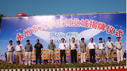 7月8日上午,由永州市勞動保障局、永州市財政局主辦,市就業(yè)服務管理局和永州數碼港承辦,市廣電局、市電信公司、市人力資源網協(xié)辦的大學生創(chuàng)業(yè)城在永州市數碼港舉行了揭牌儀式,這標志著我市大學生創(chuàng)業(yè)城正式運營。市委常委、常務副市長唐松成,省人力資源社會保障廳副巡視員呂志綱、市人大副主任楊海河、市政協(xié)副主席盤玉花及市政府辦、市政協(xié)三胞委、市財政局、市勞動保障局、市人事局、市廣電局、市教育局、市電信公司、冷水灘區(qū)政府等相關單位領導出席了揭牌儀式。,在揭牌儀式上,市勞動保障局黨組書記、局長唐樹成首先代表主辦方致辭。省人力資源社會保障廳副巡視員呂志綱致開幕詞,指出永州大學生創(chuàng)業(yè)城揭牌儀式是永州市委、市政府為促進大學生創(chuàng)業(yè)做的一件大好事、大實事,也為全省開了一個好頭,必將為永州乃至全省大學生創(chuàng)業(yè)工作起到積極的推動作用。他鼓勵廣大高校畢業(yè)生積極轉變就業(yè)觀念,高揚青春的旗幟,發(fā)揚自強不息、吃苦耐勞的精神,充分展示自己的才華,走好自主創(chuàng)業(yè)之路,實現自己的夢想。創(chuàng)業(yè)城大學生代表作了發(fā)言,表示感謝黨和政府對高校畢業(yè)生的高度關心和重視,感謝市勞動保障局提供的優(yōu)惠政策和熱情服務,他們定會開拓進取,敢創(chuàng)敢干,在創(chuàng)業(yè)中實現自我價值,創(chuàng)造精彩人生,為永州科學發(fā)展、跨越發(fā)展做出自己的貢獻。市委常委、常務副市長唐松成宣布永州市大學生創(chuàng)業(yè)城正式開城營業(yè),唐松成、呂志綱共同為由省人力資源社會保障廳廳長彭崇谷親筆題寫名稱的永州市大學生創(chuàng)業(yè)城揭牌。