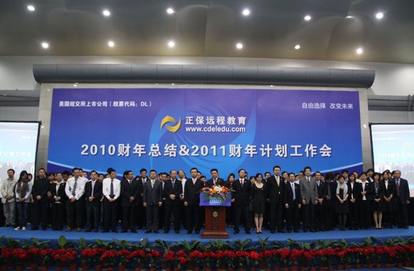 2011財(cái)年是正保遠(yuǎn)程教育第二個(gè)十年的開(kāi)始,全體正保人要繼續(xù)秉承“創(chuàng)新、進(jìn)取、激情、拼搏”的企業(yè)精神,堅(jiān)持網(wǎng)絡(luò)教育的發(fā)展方向不動(dòng)搖,堅(jiān)持建立完善的終身教育體系和完全教育體系的發(fā)展戰(zhàn)略不動(dòng)搖!讓遠(yuǎn)程教育深入人心,讓正保遠(yuǎn)程教育家喻戶曉!