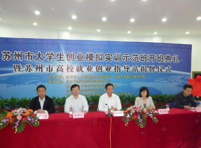 蘇州市大學(xué)生創(chuàng)業(yè)模擬實(shí)訓(xùn)示范班開班典禮暨蘇州市高校就業(yè)創(chuàng)業(yè)指導(dǎo)站揭牌儀式在我院隆重舉行