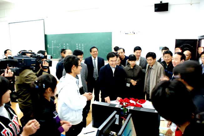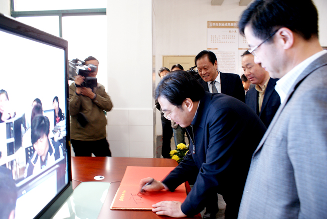 信長星一行興致勃勃地來到學(xué)院大學(xué)生創(chuàng)業(yè)模擬實(shí)訓(xùn)中心,與正在這里參加模擬創(chuàng)業(yè)的學(xué)生進(jìn)行親切的交談,詢問他們的學(xué)習(xí)情況。項(xiàng)目負(fù)責(zé)人薄賦徭副教授詳細(xì)介紹了創(chuàng)業(yè)實(shí)訓(xùn)的特點(diǎn)、目標(biāo)及實(shí)施情況,創(chuàng)業(yè)實(shí)訓(xùn)深受全院學(xué)生歡迎,一開班就有大一、大二、大三共計(jì)300多名學(xué)生報(bào)名。實(shí)訓(xùn)中心按照年級(jí)編班,將同一年級(jí)、不同專業(yè)學(xué)生編在一個(gè)培訓(xùn)班,30人為一班,既考慮到了學(xué)生基礎(chǔ)相近,以便因材施教;又考慮到不同專業(yè)可互補(bǔ),有利于保證培訓(xùn)效果。