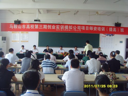 為了全面推動馬鞍山市創(chuàng)業(yè)實(shí)訓(xùn)項(xiàng)目向更深層次、更高水平發(fā)展,努力把全市高校創(chuàng)業(yè)實(shí)訓(xùn)師資隊(duì)伍建設(shè)好,提高創(chuàng)業(yè)教育工作的質(zhì)量,7月25日-27日,安徽省馬鞍山市高校第三期創(chuàng)業(yè)實(shí)訓(xùn)模擬公司項(xiàng)目師資培訓(xùn)(提高)班在馬鞍山職業(yè)技術(shù)學(xué)院教學(xué)樓北503創(chuàng)業(yè)培訓(xùn)教室隆重舉辦。本次培訓(xùn)是在全球模擬公司聯(lián)合體中國中心的支持和指導(dǎo)下,由馬鞍山市人才交流服務(wù)中心主辦,馬鞍山職業(yè)技術(shù)學(xué)院承辦。共有來自安徽工業(yè)大學(xué)、馬鞍山技師學(xué)院和馬鞍山職業(yè)技術(shù)學(xué)院三所高校38名學(xué)員參加了此次培訓(xùn)。