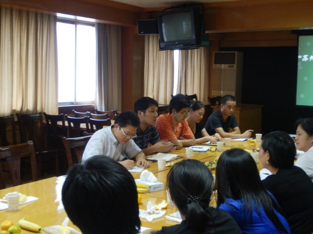 為保障蘇州市創(chuàng)業(yè)模擬實訓(xùn)教學(xué)質(zhì)量及實訓(xùn)效果,豐富實訓(xùn)教師授課內(nèi)容、分享教學(xué)經(jīng)驗,提升實訓(xùn)教師創(chuàng)業(yè)模擬實訓(xùn)綜合授課能力。2011年9月8日下午,由蘇州市創(chuàng)業(yè)指導(dǎo)中心牽頭舉辦了 “蘇州市首批創(chuàng)業(yè)模擬實訓(xùn)師”慶教師節(jié)座談會。參加此次座談會的實訓(xùn)師,主要是來自首期師資班的學(xué)員及部分院校負(fù)責(zé)創(chuàng)業(yè)實訓(xùn)項目的負(fù)責(zé)人。座談會由就管中心創(chuàng)業(yè)培訓(xùn)科科長俞芝瑜主持。