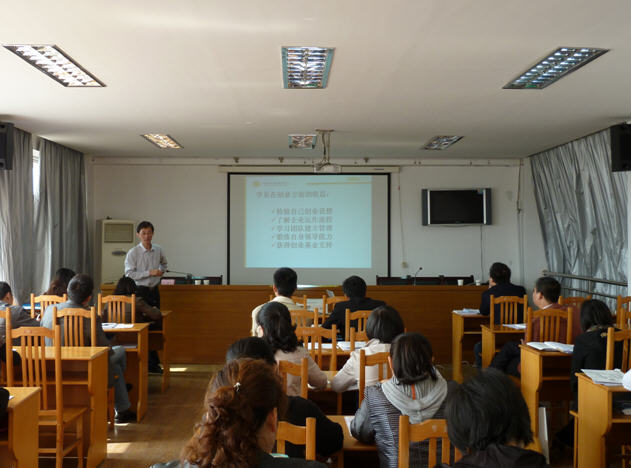 開班儀式上,胡中浦老師發(fā)表講話,他希望接下來的時間里能夠和每位老師分享授課技巧,同時也希望每位老師都能夠理解行為導向教學法的核心理念,利用這種新的教學方法給學生傳授一些創(chuàng)業(yè)的知識。緊接著,泰州市人力資源和社會保障局副局長盛鋼也發(fā)表了講話,他指出:實施創(chuàng)業(yè)實訓模擬公司項目是泰州市發(fā)展的需要,是創(chuàng)業(yè)促進就業(yè)工作的需要,政府出臺的優(yōu)惠政策就是為了鼓勵和支持創(chuàng)業(yè)工作,讓更多的學生走上創(chuàng)業(yè)之路。建立一支我市大學生創(chuàng)業(yè)的實訓師資隊伍是至關(guān)重要的,希望每位老師抓住這次學習充電的機會,積極參與,有效指導今后的創(chuàng)業(yè)培訓工作。