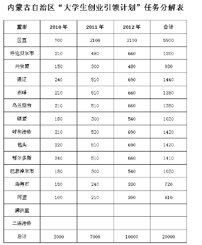 附件:內(nèi)蒙古“大學(xué)生創(chuàng)業(yè)引領(lǐng)計(jì)劃”工作任務(wù)分解表。